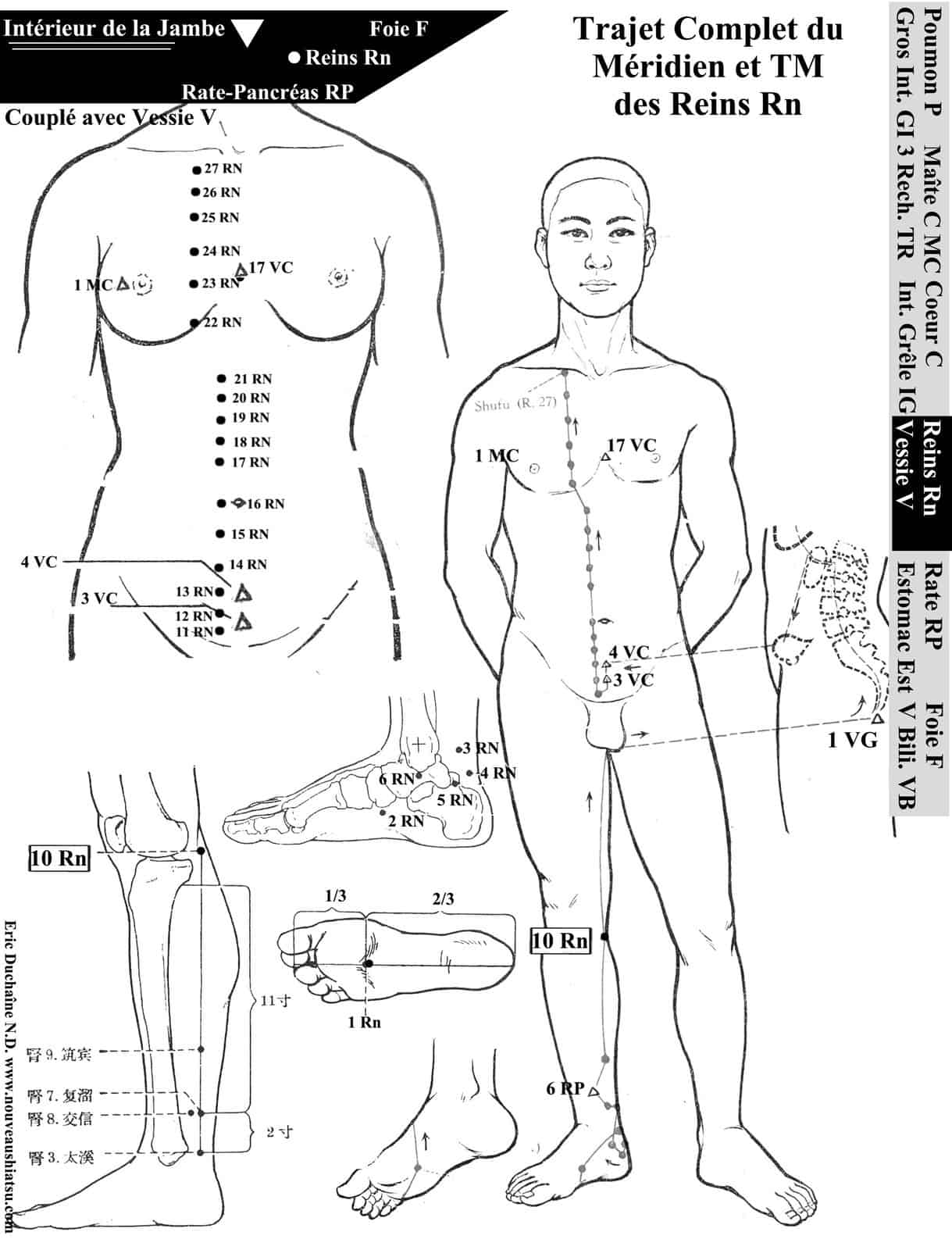 Les Reins sont la racine du Ciel Antérieur qui est la source du Yin véritable (Zhen Yin) et du Yang originel (Yuan Yang). Les Reins stockent le Jing (Shen Cang Xue) à partir duquel est produit le Qi des Reins. Ils gouvernent les os, la reproduction et la croissance, la réception du Qi et l’Eau. Ils s’ouvrent aux oreilles et se manifestent dans les cheveux.